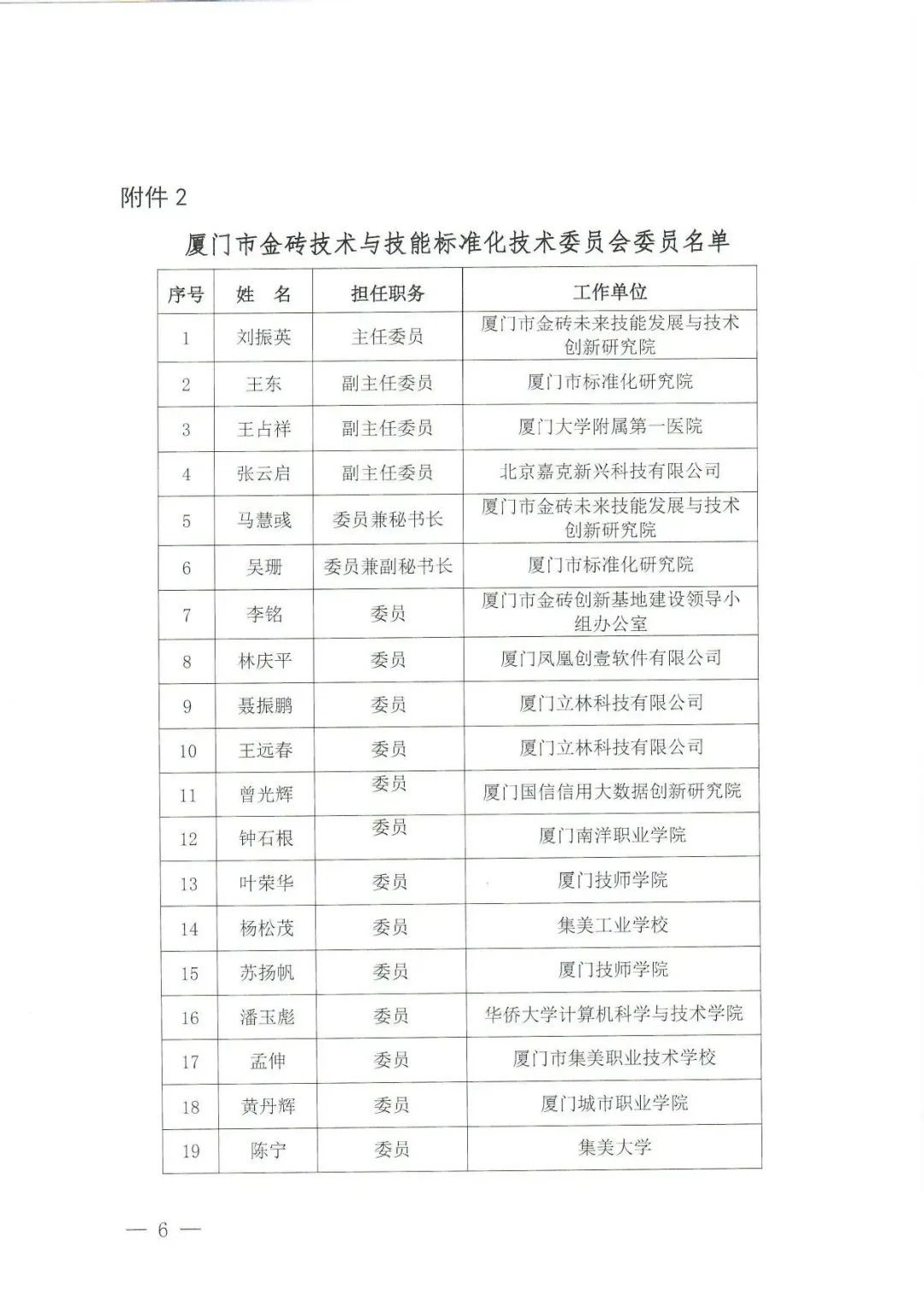 廈門(mén)金標(biāo)委主要負(fù)責(zé)全市金磚技術(shù)與技能領(lǐng)域標(biāo)準(zhǔn)化相關(guān)工作,秘書(shū)處由廈門(mén)市金磚未來(lái)技能發(fā)展與技術(shù)創(chuàng)新研究院承擔(dān)。